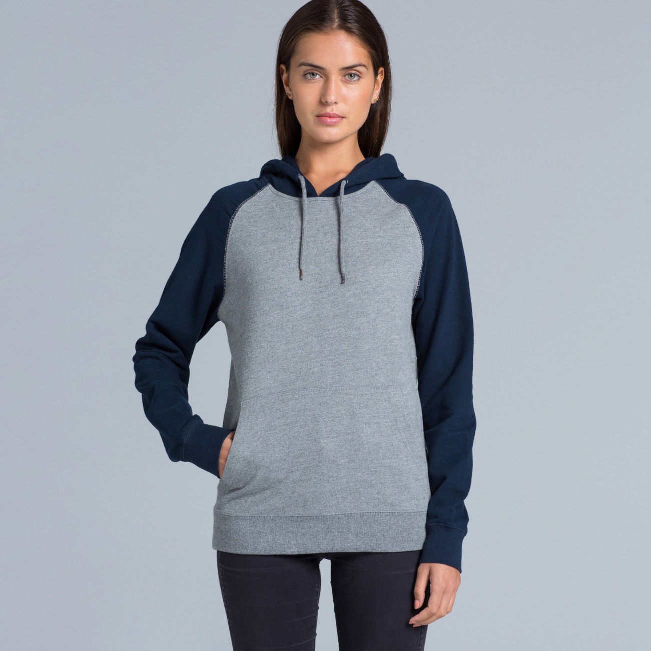 Pullover hood, raglan sleeves, contrasting body colour, kangaroo pocket