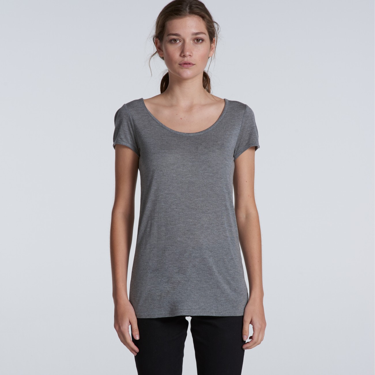 Wider scoop neck, longer body, split detail at sides, slight drop at back