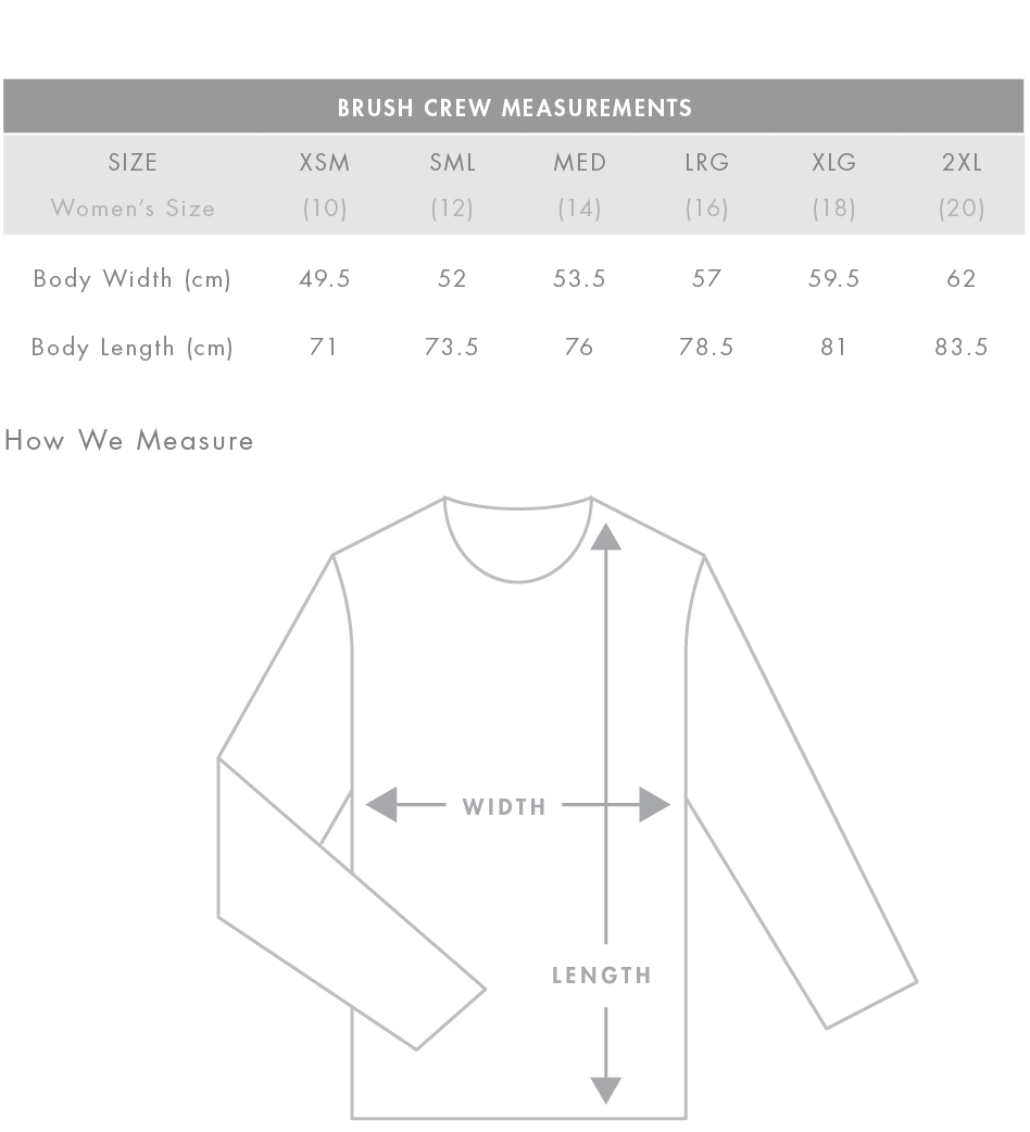 Self-fabric neck binding, waist and sleeve cuffs, side seamed, preshrunk to minimise shrinkage