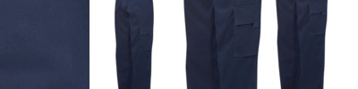 65% Polyester for durability,35% Cotton for comfort,270gsm Twill fabric,Constructed waistband with 6 belt loops,2 front slant pockets and 2 hip welt pockets, one coin pocket under waist,Bar tack at all pressure points
