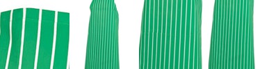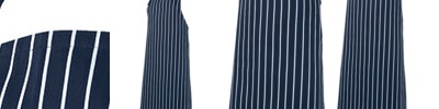65% Polyester for durability, and 35% Viscose,Yarn-dyed twill weave stripe,Bib style, self fabric neck strap and side ties,Adjustable Bib neck strap with fixed on fasteners,Self-fabric ties,Easy care